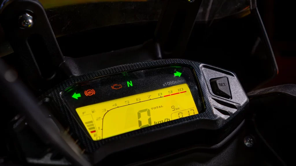 O painel digital da STORM é 100% moderno e oferece uma visão completa e intuitiva. Ele apresenta informações essenciais como o indicador de combustível, marcha, neutro, conta giros e o pisca-alerta de forma clara e precisa. Para um toque ainda mais personalizado, o painel permite que você altere as cores, ajustando o visual de acordo com sua preferência. Tecnologia e estilo unidos para proporcionar uma experiência de pilotagem única.